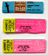 ![]() | Tickets: laminated card stock, in various colours. There is one Statue of Liberty ticket and two for the Broadway Magic musical. |