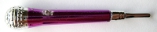 Cordless Microphone: Chromed plastic with fuchsia grip. Came attached to a piece of pink card stock, in a baggie.