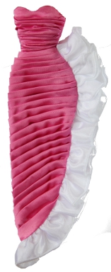 Ruffled rose satiny sheath with strapless sweetheart neckline (held in