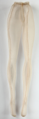 hose: Flesh-toned, seams in the back, elasticized waist.