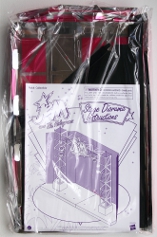 ![]() | Stage Diorama: Came in a bag inside the shipper. Includes several pieces of paper & cardboard items of varying thicknesses, designs and colours, the New York backdrop being the star of the show, made of "board game" quality material. This is a pretty complex extra, I must say, and will take at least an hour to get it set up properly. It uses the Jem stands and poles to display the dolls. |