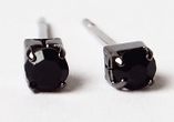 ![]() | Earrings: hematite-toned metal studs with a black stone, square mount. |