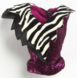 ![]() | The inside of the top cover is bright pink with a white Misfits logo & confetti/music notes design printed on the inside. The inner part of the back of the box is undecorated black. The doll display area is white with black tiger stripes; the "door" has 5 panels of white and pink animal stripes design with the Misfits logo in black. It is the same for all of the Misfits. |