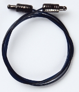 thin black plastic cord with hematite-tone connectors. Fits into the bottom of the microphone or guitar and into the figure
