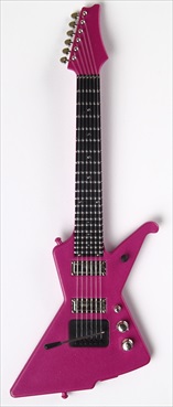 ![]() | Guitar: Plum with six nylon strings and whammy bar.