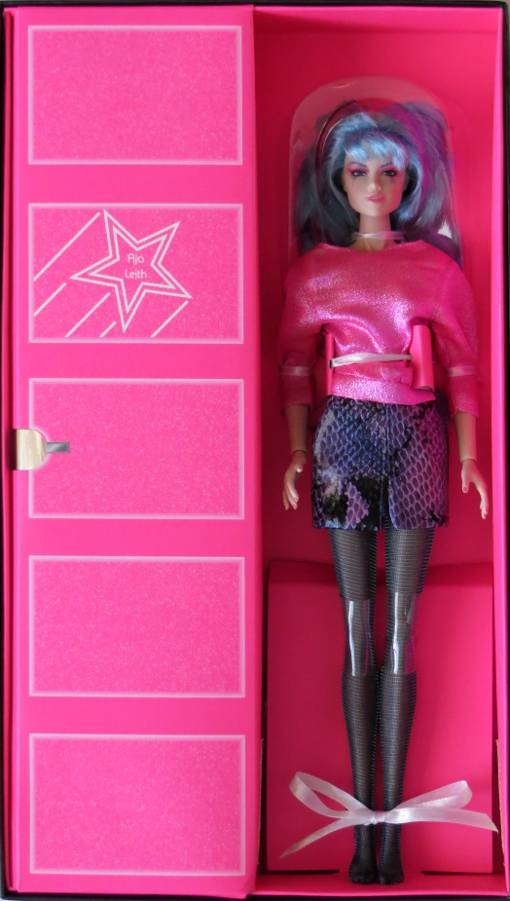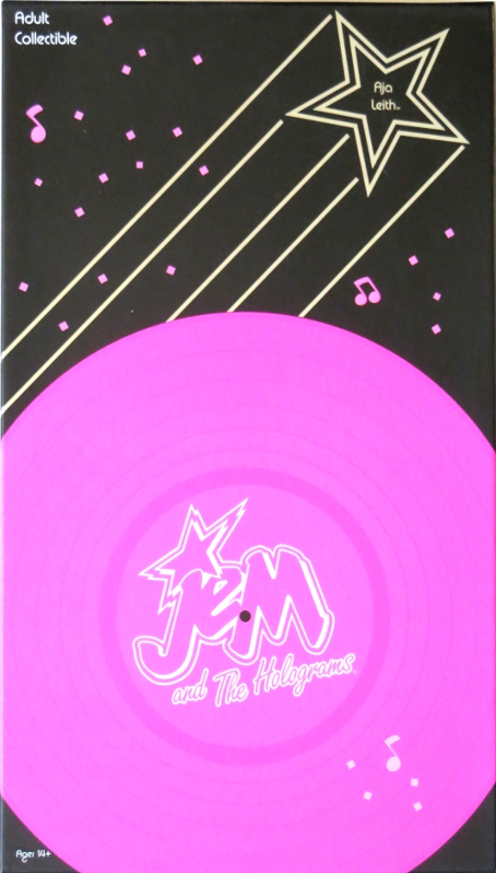 Shipper: A plain cardboard box with some printing on the bottom reading ITEM NO.: 14027/DESC.:AJA LEITH/Adult Collectible Dressed Doll/The JEM AND THE HOLOGRAMSTM Collection. The doll box was wrapped in clear cellophane bag. |