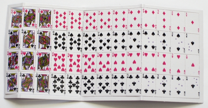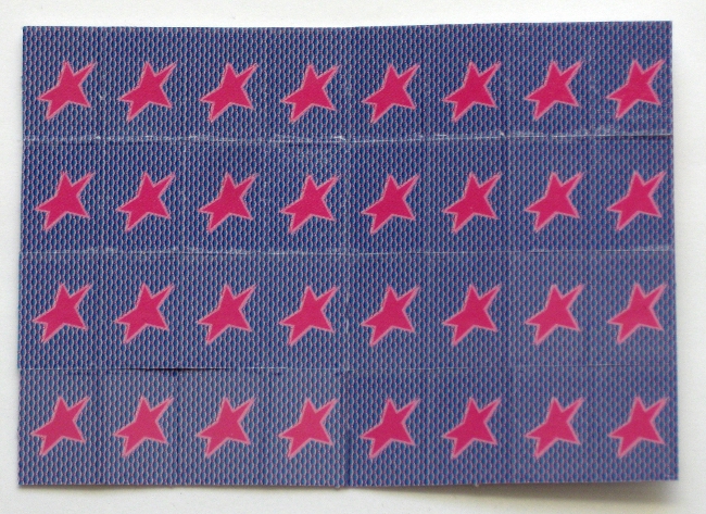 ![]() | Playing cards: Came folded in a baggie, need to be perforated by user. The backs of cards feature a pink star on a blue field. |
