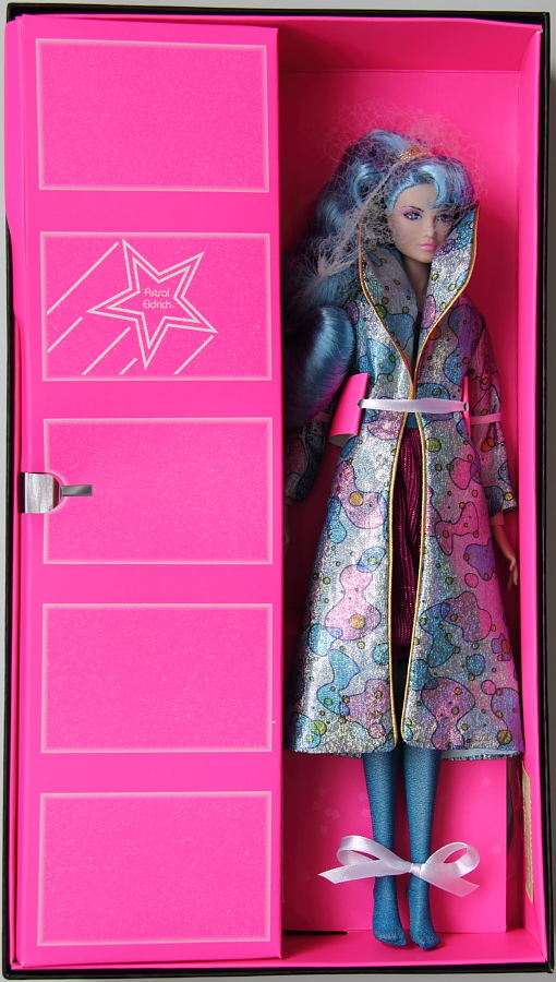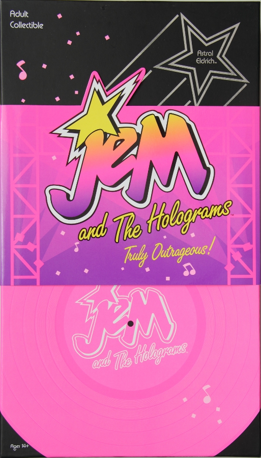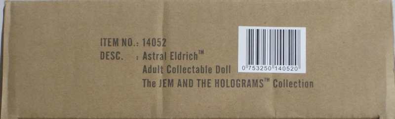 Shipper: A plain cardboard box with some printing on the bottom reading ITEM NO.: 14052/DESC.: Astral EldrichTM/Adult Collectable doll/The JEM AND THE HOLOGRAMSTM Collection. The doll box was wrapped in clear cellophane bag. |