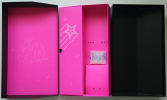 ![]() | Box: Came in a thick cardboard diagonal edged box, sort of a satin finish (not shiny, not matte). It is black with a silver foil shooting star with the name of the doll inside printed in it. The record has embossed grooves on it. It is dated 2015 on the bottom with the new(er) Integrity Toys logo. |