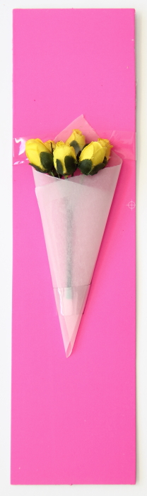 Bouquet wrapping paper, presented on a large piece of pink cardboard in the largest compartment in the accessories tray. |