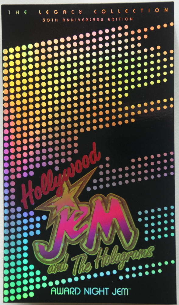 Shipper: A plain cardboard box with some printing on the bottom reading ITEM NO.: 14064/DESC.: Hollywood Jem TM Award Night/30th Anniversary Edition Dressed Fashion Doll/The JEM AND THE HOLOGRAMS TM Collection/Adult Collectible Doll |