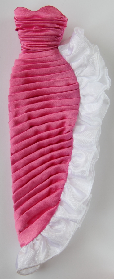 Ruffled rose satiny sheath with strapless sweetheart neckline (held in