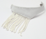 Belt: White leatherette with hook and eye closure, white satin fringe trim. |