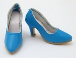 shoes: aqua leatherette pumps, white interior, beige soles. |