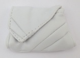 ![]() | Purse: white faux leather clutch. Comes stuffed with paper, has hook and eye closure. |