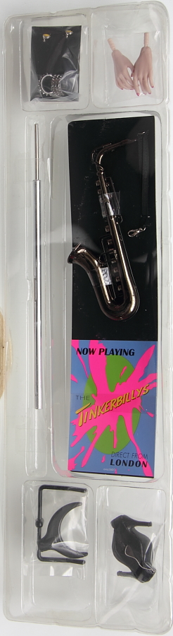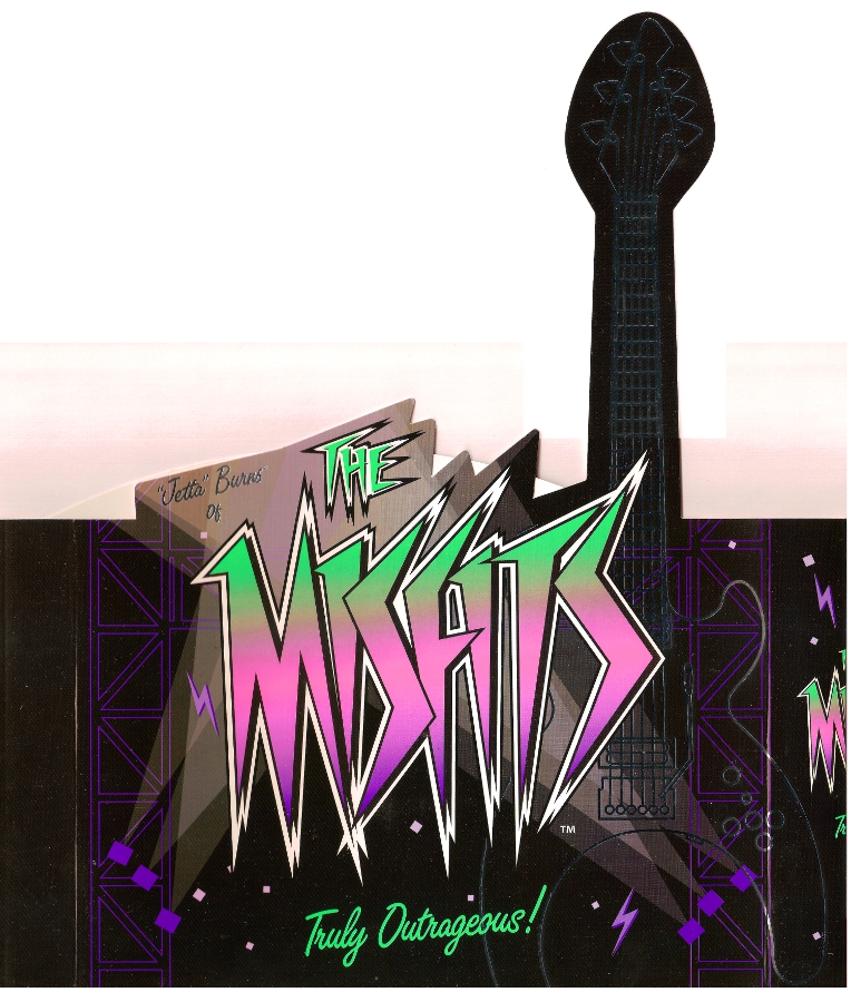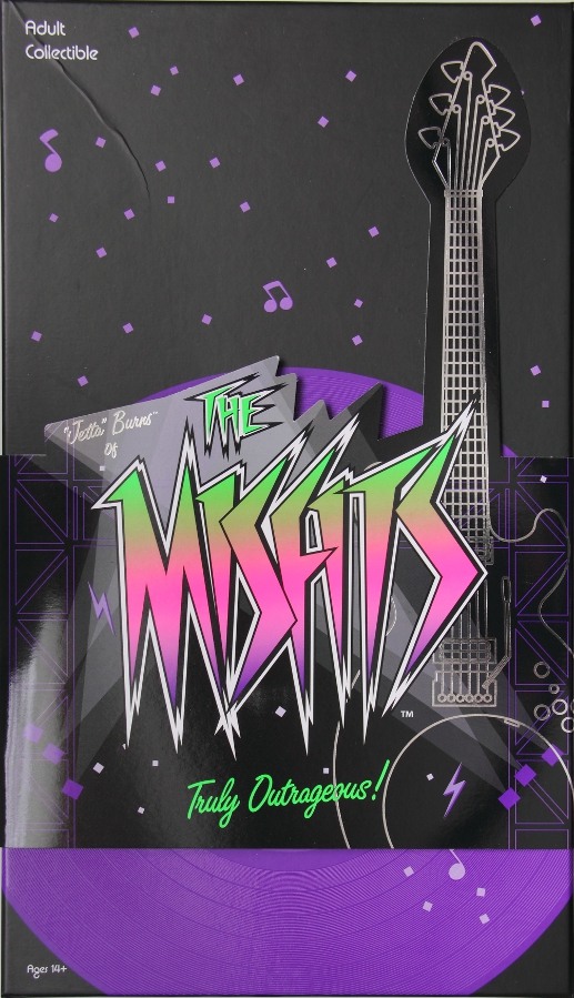 ![]() | Sleeve: Die cut card stock with Misfits logo, silver guitar and name of the doll on upper left. (back) |