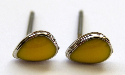 ![]() | Earrings. Silver-tone metal with yellow enamel tear drop shapes. Came attached to a piece of black card stock in a baggie with the other jewellery. |