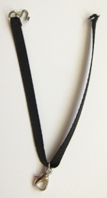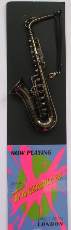 ![]() | Saxophone strap: Black ribbon with silver toned metal fasteners. Came attached to a piece of black card stock.