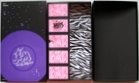 ![]() | The back is comprised mostly of a black background and a repetition of the purple music notes/stars/confetti design. |