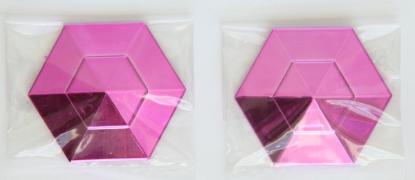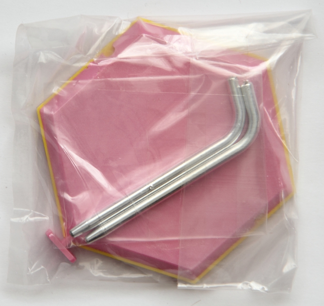 ![]() | Cymbals (2): Hexagonal, chrome pink finish. Came in separate baggies. |