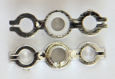 ![]() | Triple retainer ring (2): Chromed plastic. Came in a baggie with the single tripod legs & tom arms in the accessory tray.