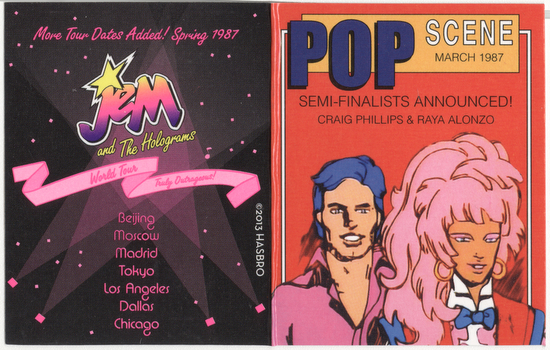 ![]() | Certificate of Authenticity: postcard sized. There is no mention of the edition size. This COA has come with all of the dolls so far, except for: Hollywood Jem, The Holograms Stage Essentials, The Misfits Stage Essentials, Who is He Kissing Jem/Jerrica Benton, Glitter 'n Gold Rio, Glitter 'n Gold Jem/Jerrica Benton. |