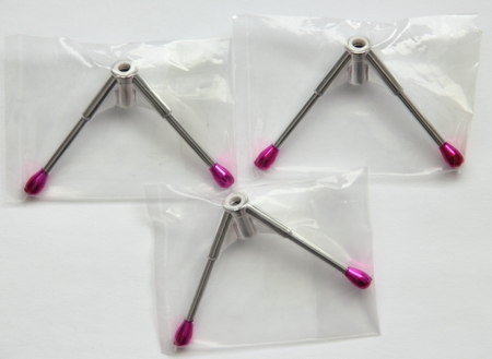 ![]() | tripod single legs (3): Chromed plastic. Came in a baggie with the tom tom arms & triple retainer rings in the accessory tray. Completed tripod. |