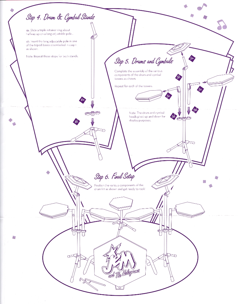 ![]() | Instructions (Page 1): Raya's instructions are specific to her and deal largely with putting her drum set together. |