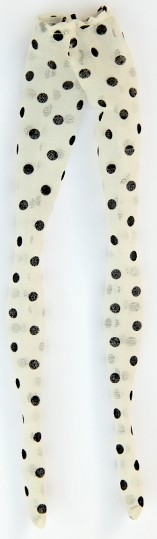 Tights: sheer white (with a slight yellowish tinge) tights with black printed polka dots, elasticized waist. |