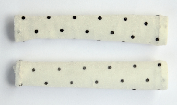 ![]() | Gauntlets: thin white cotton with small black polka dots. |