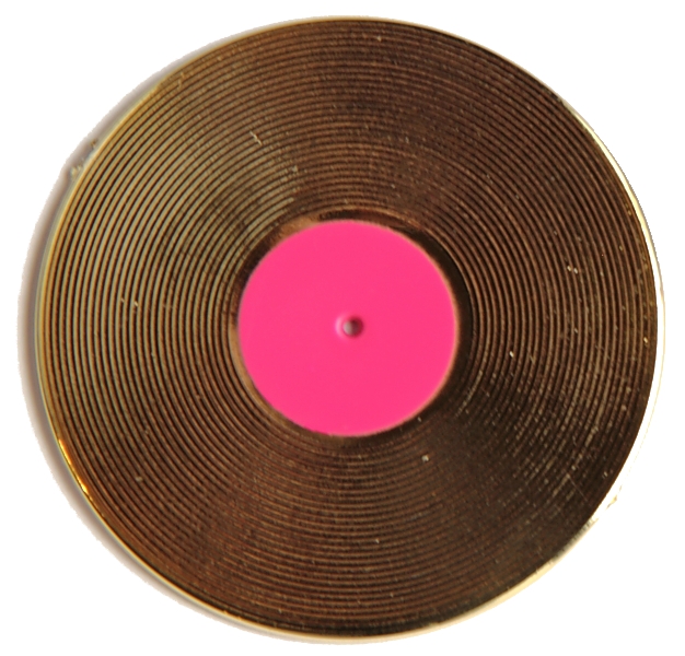 Plastic with super shiny dark gold mirror finish, grooved with a pink
