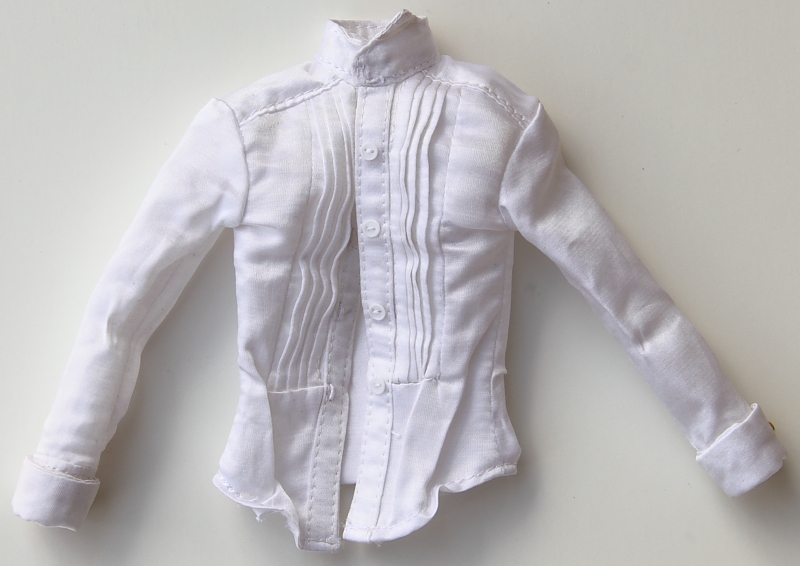 cuffs with gold "cuff links," which are two buttons sewn to either side, not