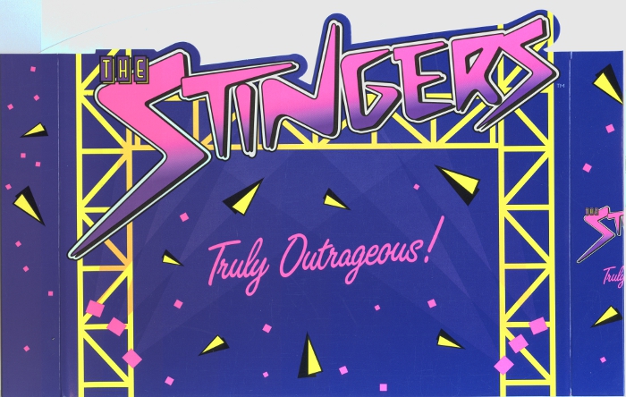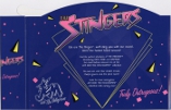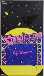 Glossy thin card stock, die cut edges on top. Stingers logo on indigo, the same sleeve came with all three Stingers dolls.
