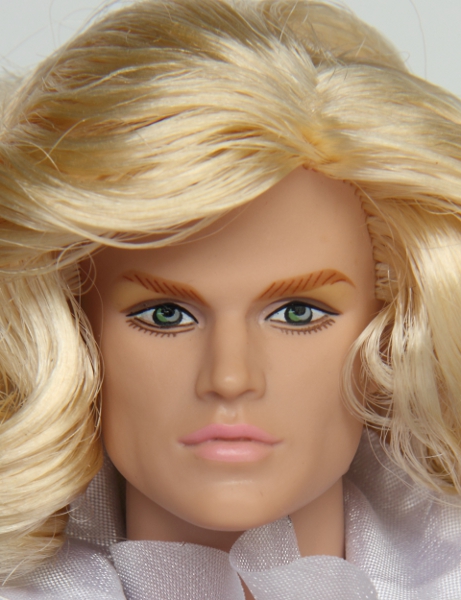 (FR White, in Integrity terms) complexion, long blonde curly hair, grey-green eyes. His right ear is pierced.