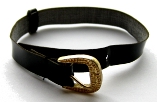 ![]() | Belt: faux patent leather with gold buckle. There is a small loop to hold the end of the belt in place. |