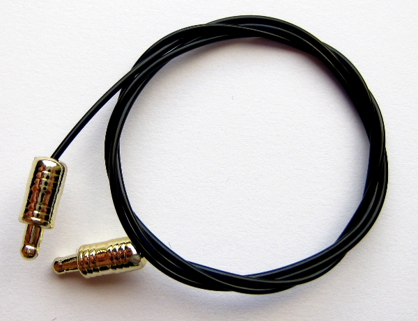 thin black plastic cord with gold-tone connectors. They fit (it's