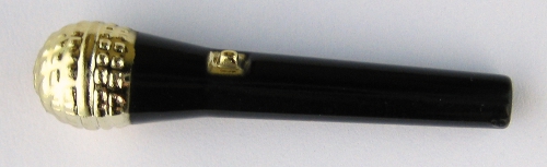 ![]() | Microphone stand: gold-tone plastic tube with an adjustable metal inner pole, swivel mic holder on top.
