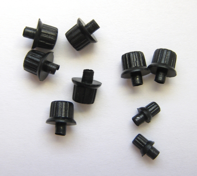 7 large and 2 small plastic knobs that fit into spaces in the cardboard