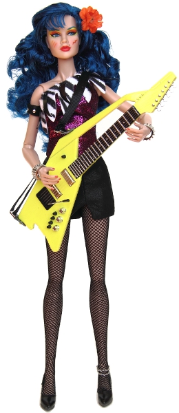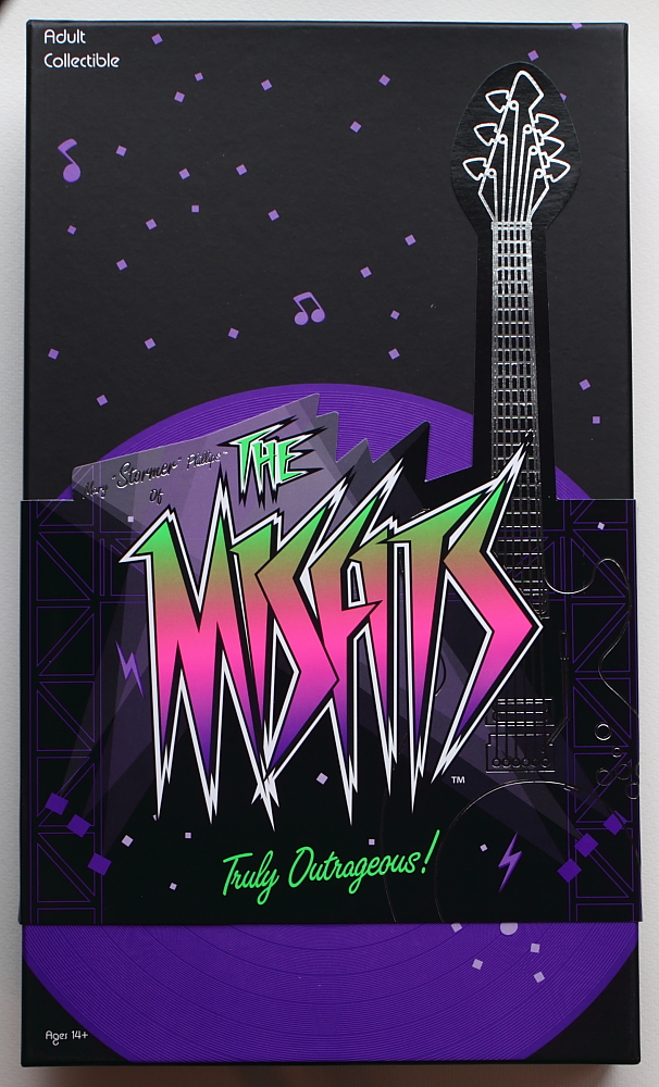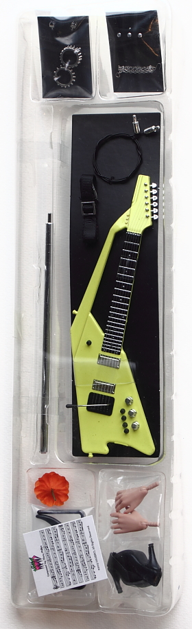 ![]() | Sleeve: Die cut cardstock with Misfits logo, silver guitar and name of the doll on upper left. (back) |