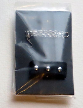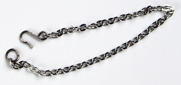 ![]() | anklet: double-length silver-tone chain. Came in a little baggie, sewn onto a black card in accessories tray. |