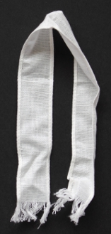 ![]() | Scarf/ascot; white thin linen textured with a fringe. |