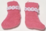 socks: dark pink cotton crew socks with white lace trim. |