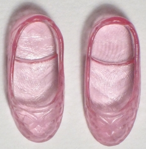 shoes: Mauve-pink flat jelly shoes.
