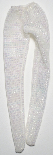 tights: white waffle-weave with iridescent tinsel threads, elasticized waist |