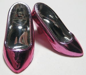 glitter shoes: chrome pink straight edged pumps, silver insides. |