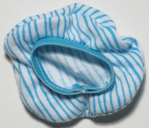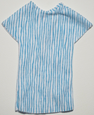 daytime dress: white T-shirt cotton with blue vertical pinstripes. The hems and