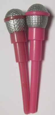 microphone: dark pink hand-held Jem mic with slightly metallic grey-painted head