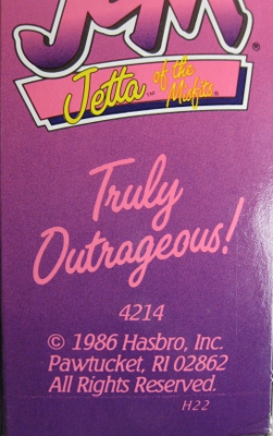 Black with white lettering. Side A Jetta - "JEM Theme", "Who Is She Anyway?" "Designing
