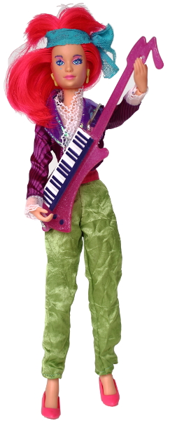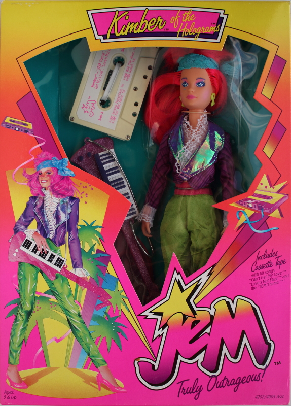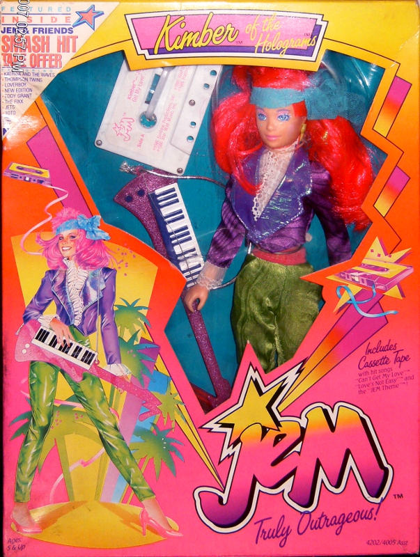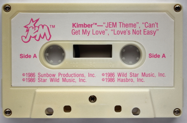 cassette tape: The tape she comes with is the standard white with pink writing and has the songs: "Jem Theme" , "Can't Get My Love" , "Love's Not Easy." |