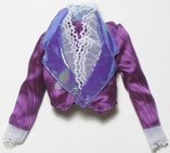 stage fashion part 1, jacket: Kimber's new tuxedo jacket is made of satiny plum material with a darker purple "woodgrain" design running through out. Her lapels are iridescent purple like Video's jacket, trimmed with lace cuffs and inner lapels. |
